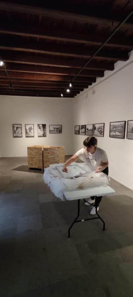 En este tiempo le ha tocado ayudar al montaje y desmontaje de una exposición itinerante que el Centro está realizando por la Isla, 1931 La Palma, Postales de otro tiempo. La hemos llevado de la Casa Salazar en Santa Cruz de La Palma a dos sedes en el Municipio del Paso, y de allí al Instituto de Astrofísica de Canarias situado en el Roque de los Muchachos, asumiendo tareas tanto en la organización de los traslados, como en el faciliyt report y el montaje.
