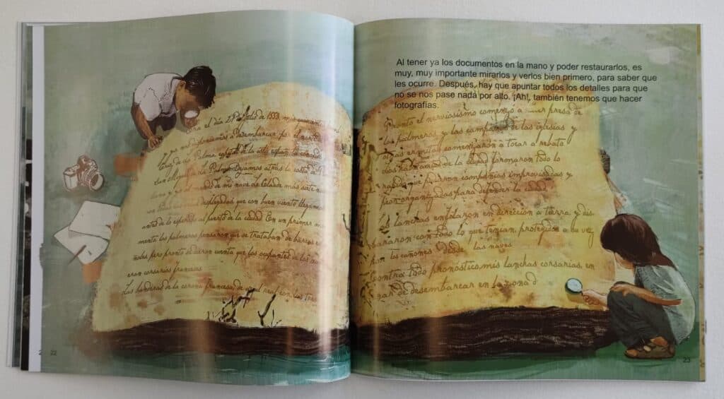 El trabajo realizado por la alumna Myriam Fernández Martín, ha culminado con la impresión de su libro-álbum para que se pueda disfrutar de manera física. La historia que nos presenta es sumamente rica en matices tanto, narrativos como visuales, y donde nos evidencia la necesidad de escuchar, ver y entender tanto, a las personas más jóvenes como a aquellas que ya tienen experiencia para poder conservar el patrimonio legado, en cualquier medida que sea su formato.